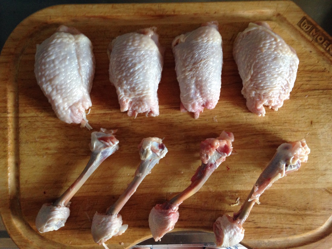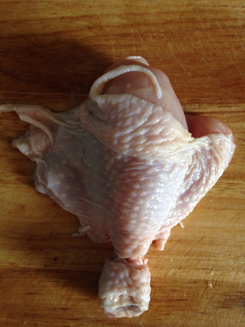 准备:琵琶腿去骨,切成1CM肉丁;土豆不去皮,切滚刀;